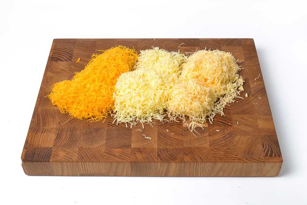 Поставить нагреваться воду в кастрюле для макарон. Натереть все сыры на мелкой терке – примерно 2/3 от каждого куска.
